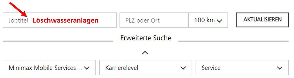 Hinweis: Nach Aufruf des Links erhalten Sie eine Übersicht aller Servicetechniker-Stellenangebote! Wenn Sie ausschließlich die Stellen für den Bereich "Löschwasseranlagen" ansehen möchten, geben Sie bitte als Jobtitel/Suchbegriff zusätzlich Löschwasseranlagen ein.